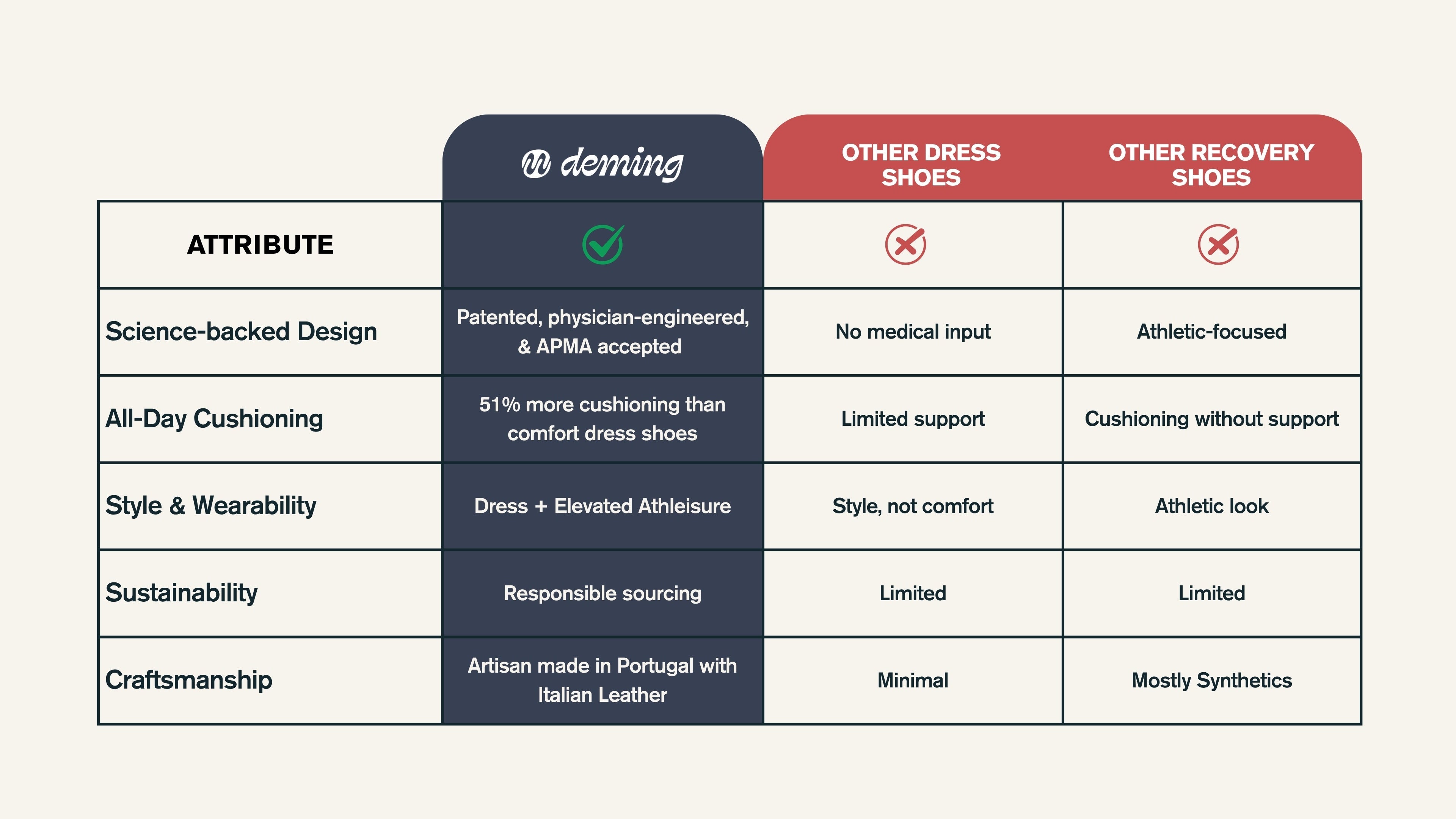 Developed with leading podiatrists and orthopedic experts, our patented design actively promotes foot health and recovery with every step.